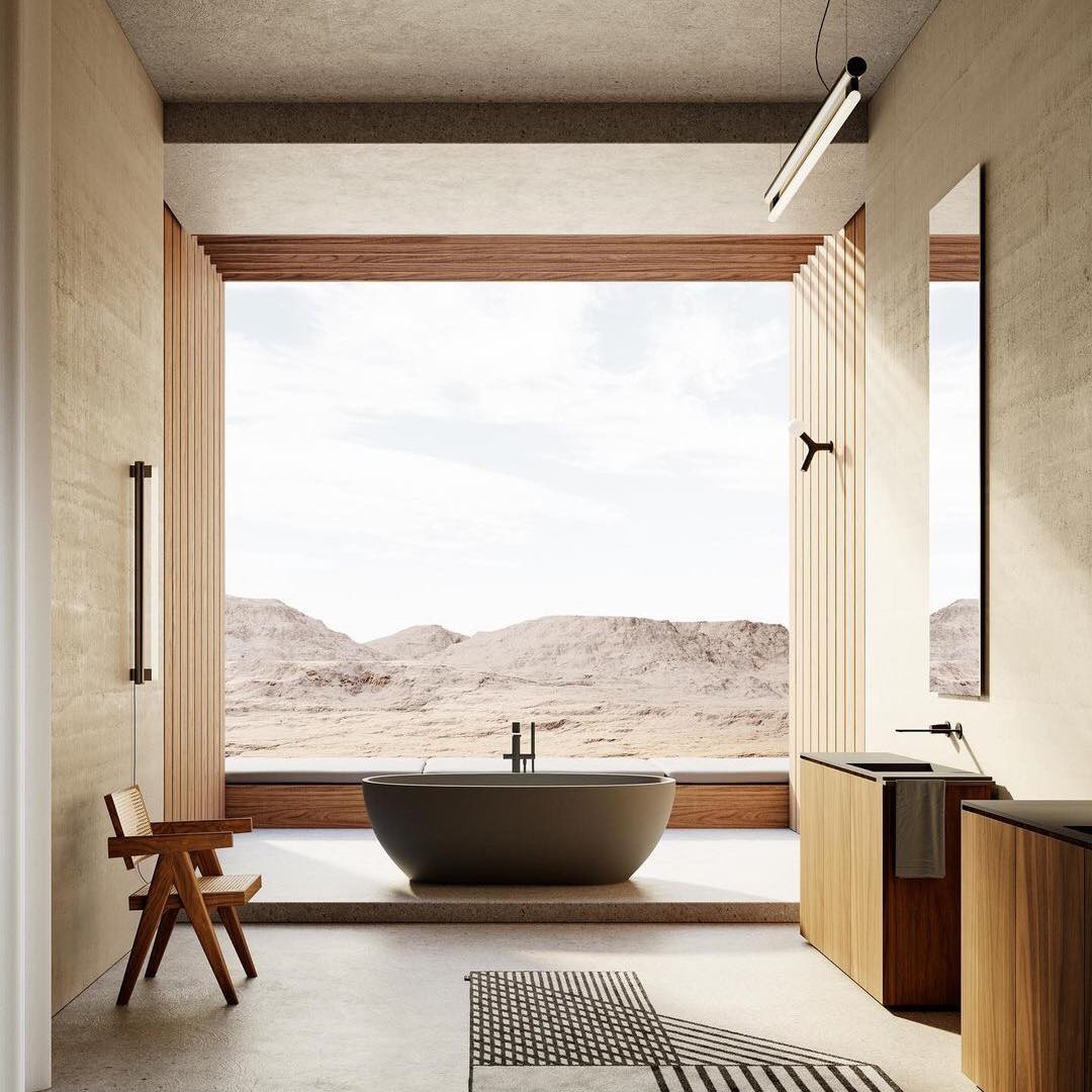 Hand-finished in Italy from Colormood®, a velvety solid surface material, Reflex offers a tactile, matte depth that absorbs light and invites sensory immersion. Designed for contemporary wellness environments, this freestanding bathtub transforms ritual bathing into an intimate architectural experience.