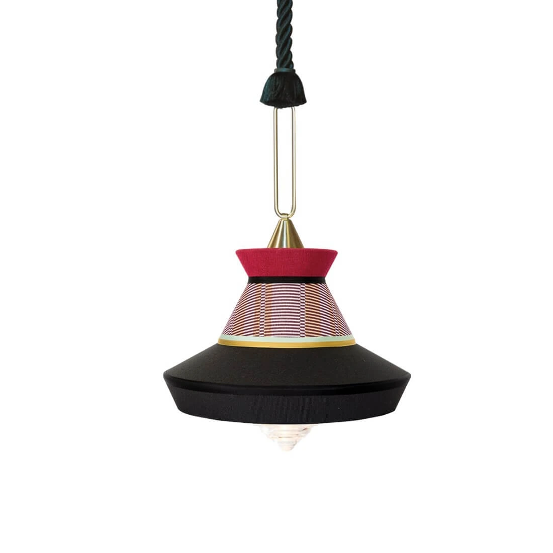 Servomuto reimagines lighting through a lens of fashion, theatre, and artisanal craft—creating statement pieces defined by layered textiles, rich colour palettes, and tailored silhouettes. Known for its handmade lampshades and expressive material combinations, the Milan-based studio brings a decorative, couture sensibility to contemporary interiors.