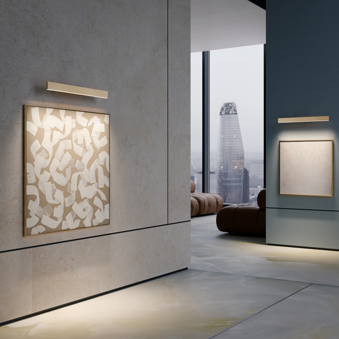 Minimalist and poised, Contardi’s Fly wall picture light reinterprets functional lighting as sculptural composition. A slender linear form, available with an upper or front textile diffuser, projects soft, controlled illumination, enhancing curated residential, hospitality, and commercial interiors with architectural clarity.