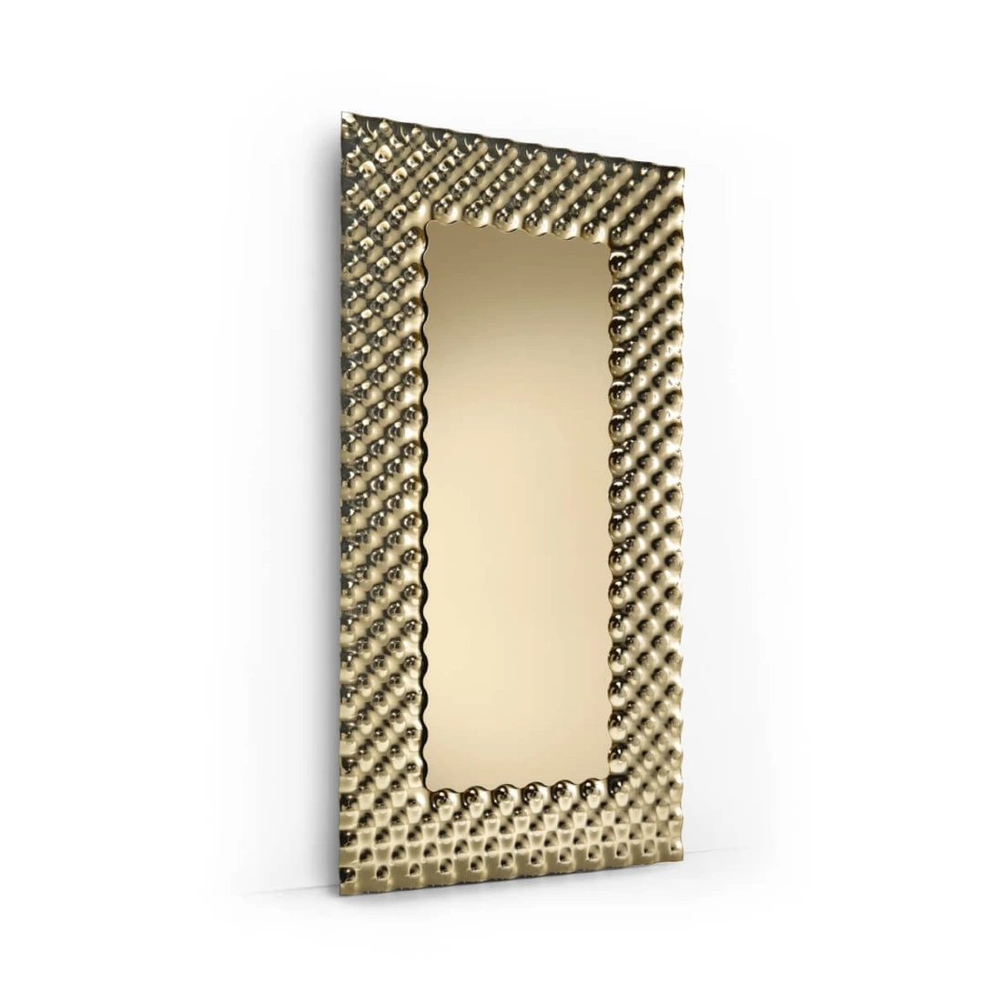 This edition is crafted from 6mm high-temperature fused glass, paired with a 5mm central bronze mirror and bronze-painted metal rear frame. Available in two sizes, Pop can be wall-mounted or freestanding. Made in Italy, it fuses material tension with sculptural clarity.