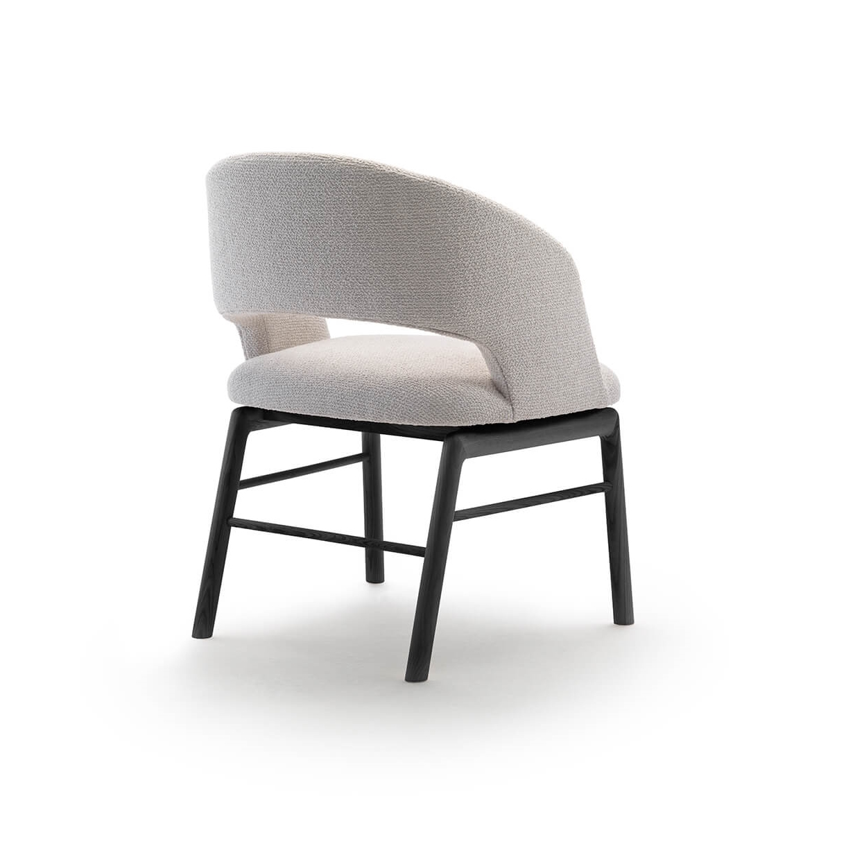 With its wraparound backrest and gently contoured seat, the Alma dining armchair by Flexform offers a sculptural take on dining room comfort. Its solid wood base—crafted in Canaletto walnut or ash—grounds the form with natural warmth and can be finished to harmonise with refined material palettes.
