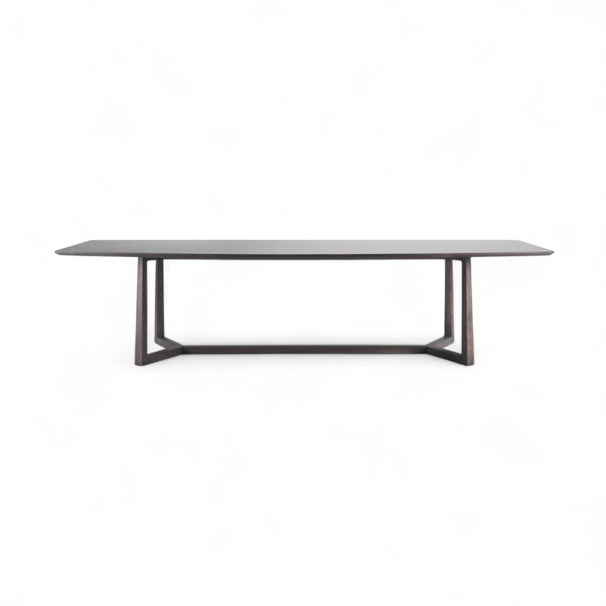 A study in proportion and materiality, the Gipsy dining table by Flexform brings architectural precision and warmth to refined dining interiors. Its solid Canaletto walnut or ash wood base—offered in a selection of hand-applied stain finishes—anchors the piece with structural clarity, while the square legs and linear joinery evoke classical cabinetmaking traditions with a modern sensibility.