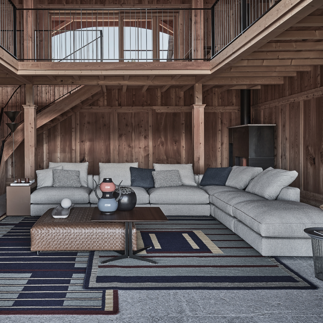 The seat cushions are filled with polyester fibre, with an insert in single-density crushproof material for reliable comfort. Alternatively, premium seat cushions are available with sterilised goose down (Assopiuma certified, gold label) and an insert in high-resilience, crushproof material for added luxury.