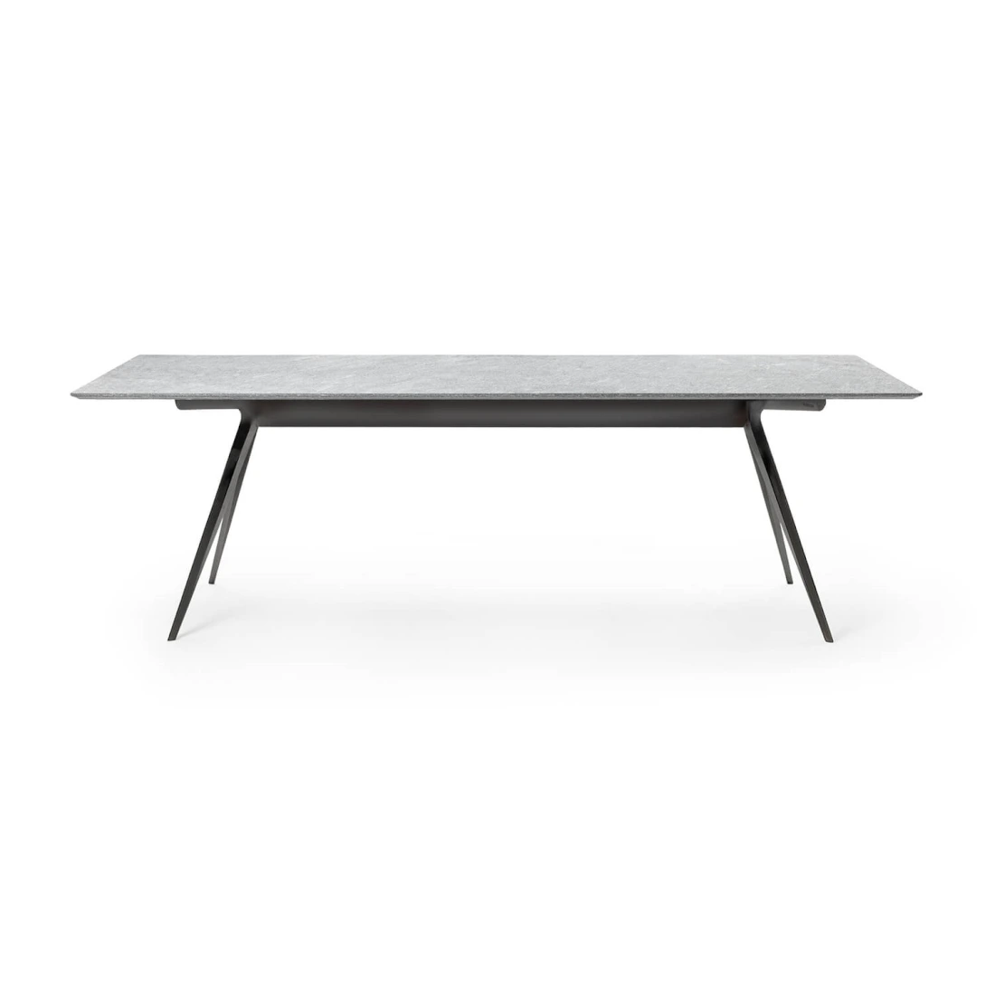 The top is crafted from natural stone—options include Beola argentata, Pietra del Cardoso, lava stone, or porphyry—each selected for its visual depth and weather resistance. Designed to withstand the elements without sacrificing sophistication, Zefiro is a refined focal point for luxury outdoor dining, merging material richness with architectural simplicity.