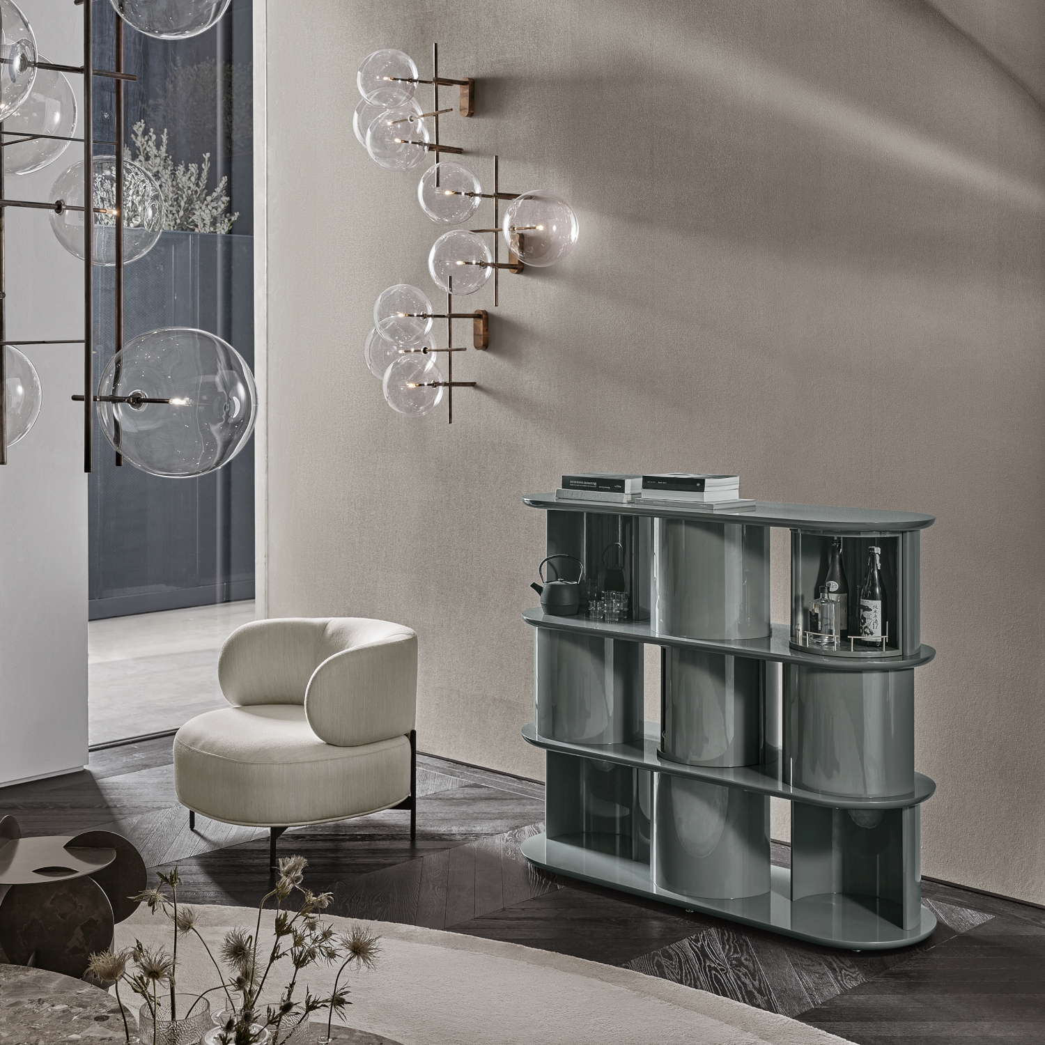 With its cocooning profile and sculptural poise, the Akiko armchair by Gallotti&Radice introduces a sense of quiet architecture to refined lounges, reading corners, and boutique hospitality interiors. The curved backrest and fluid proportions create an intimate seating landscape, bridging softness and structural clarity.