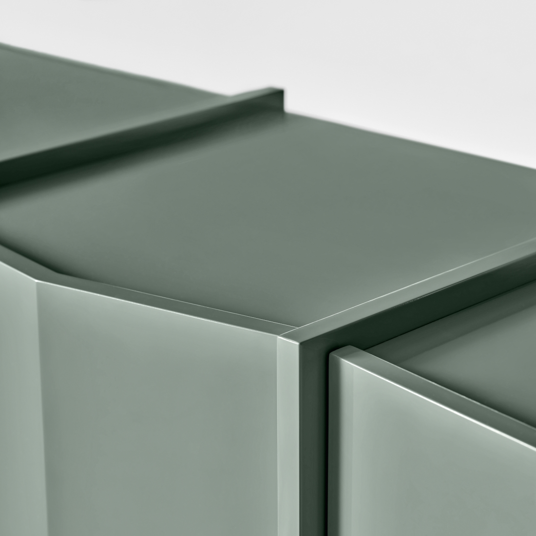 Offered in matte or glossy finishes with colour-matched feet, the cabinet’s seamless silhouette reflects Gallotti&Radice’s mastery of detail and proportion. Designed as a freestanding piece, Diedro transcends storage to become a collectible object—where material finish and form speak in perfect harmony.