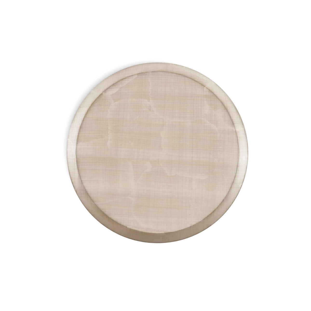 Each surface is hand-finished with a striking foil-leaf treatment in one of three options: autumn weave on gold, carbon black on copper, or winter weave on silver. Made in Italy, Gong exemplifies material artistry and timeless design, transforming surface into sculpture with vintage-inflected elegance.