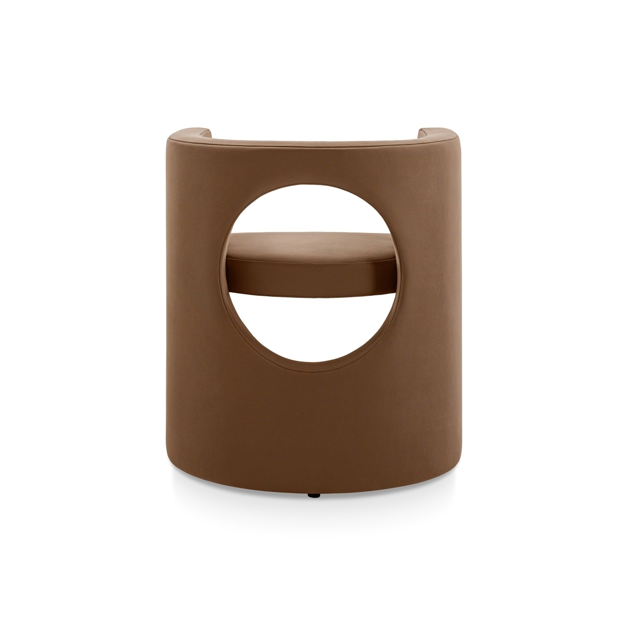 Constructed with a metal inner frame and moulded in multi-density polyurethane foam, the chair offers ergonomic support beneath its tailored upholstery. Available in a curated selection of Gallotti&Radice fabrics and leathers, the H2O armchair embodies tactile richness and precision craftsmanship—perfectly suited to both refined residences and hospitality interiors.