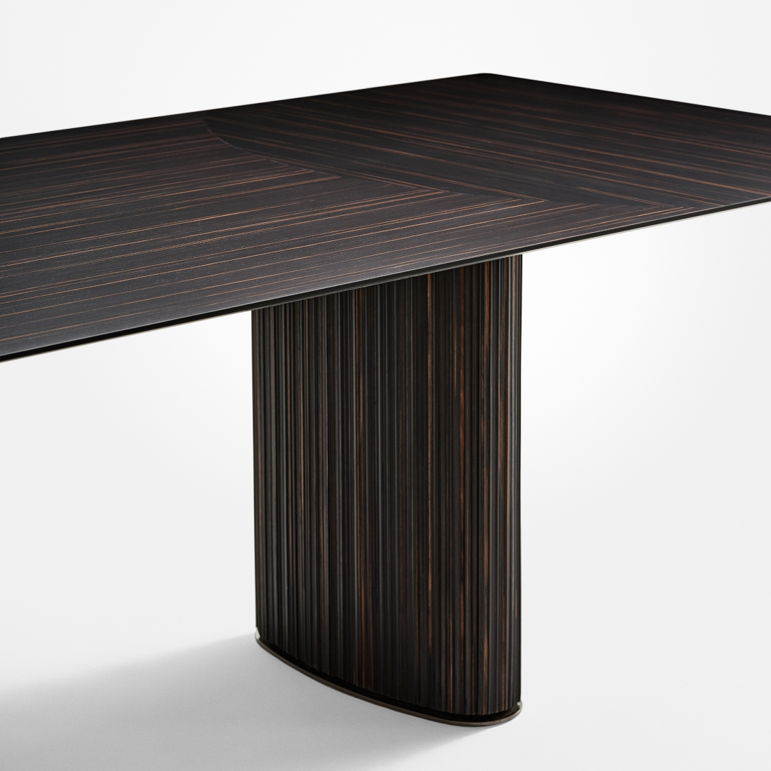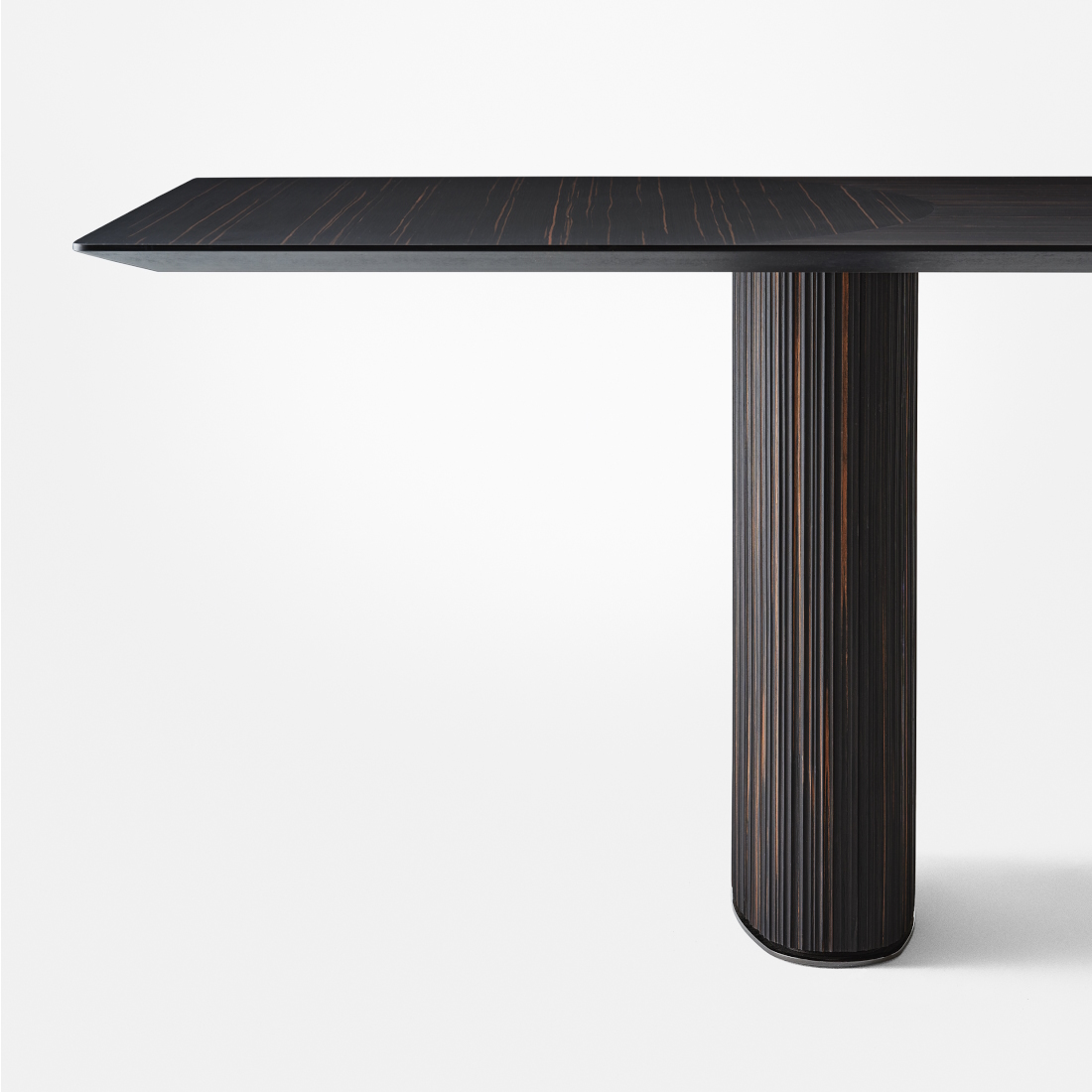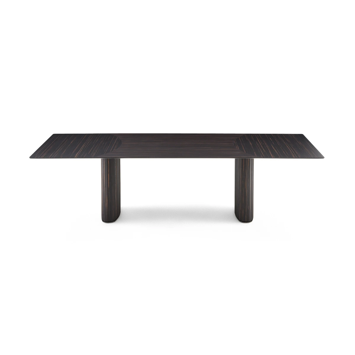 Configured with geometric clarity, the Shiro dining table by Gallotti&Radice introduces architectural weight to formal dining environments and contemporary entertaining spaces. Its bold rectangular form rests on twin pedestal bases, defining symmetry and volume with sculptural intent. The silhouette offers a spatial anchor—measured, linear, and monolithic in presence.