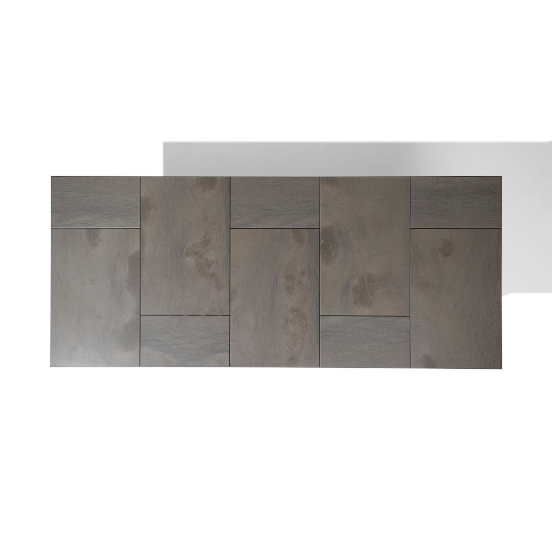 Top composed of refined inserts in Etna lava stone, showcasing natural veining and rich tonal variation. Each piece is inherently unique, with subtle irregularities that reflect the authenticity of the material.