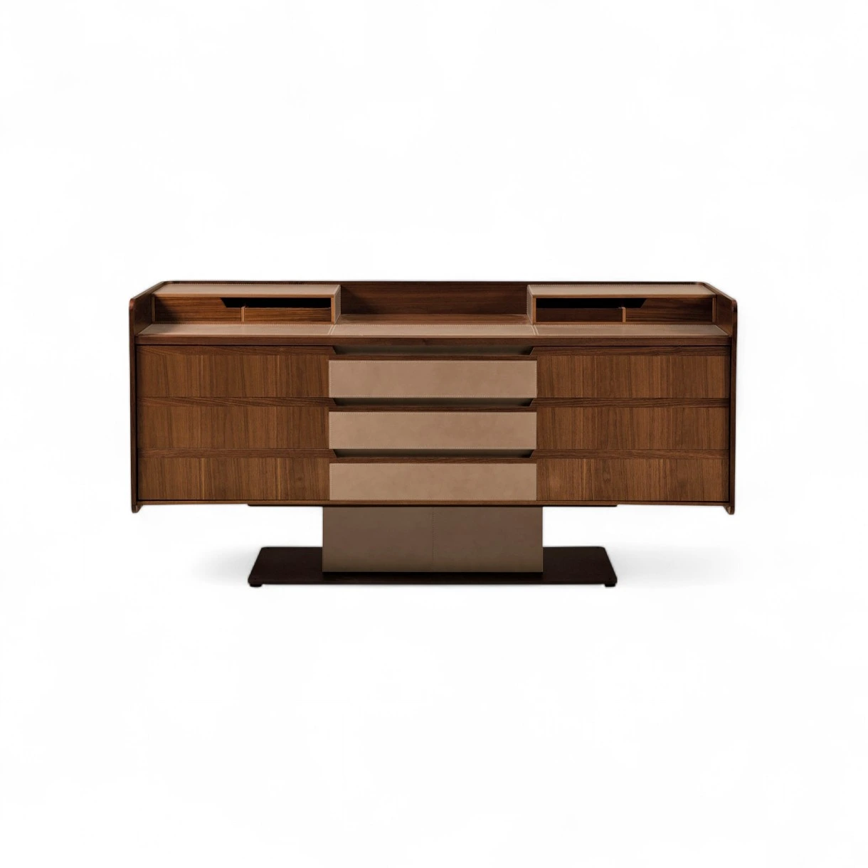 Founded in 1898 and based in Brianza, Giorgetti is an Italian maker rooted in cabinetmaking tradition. Every piece is made in its heritage atelier, where sculptural design meets material rigour—combining solid walnut, saddle leather, and marble with techniques refined over generations. The result is furniture conceived not just as form, but as spatial craftsmanship.