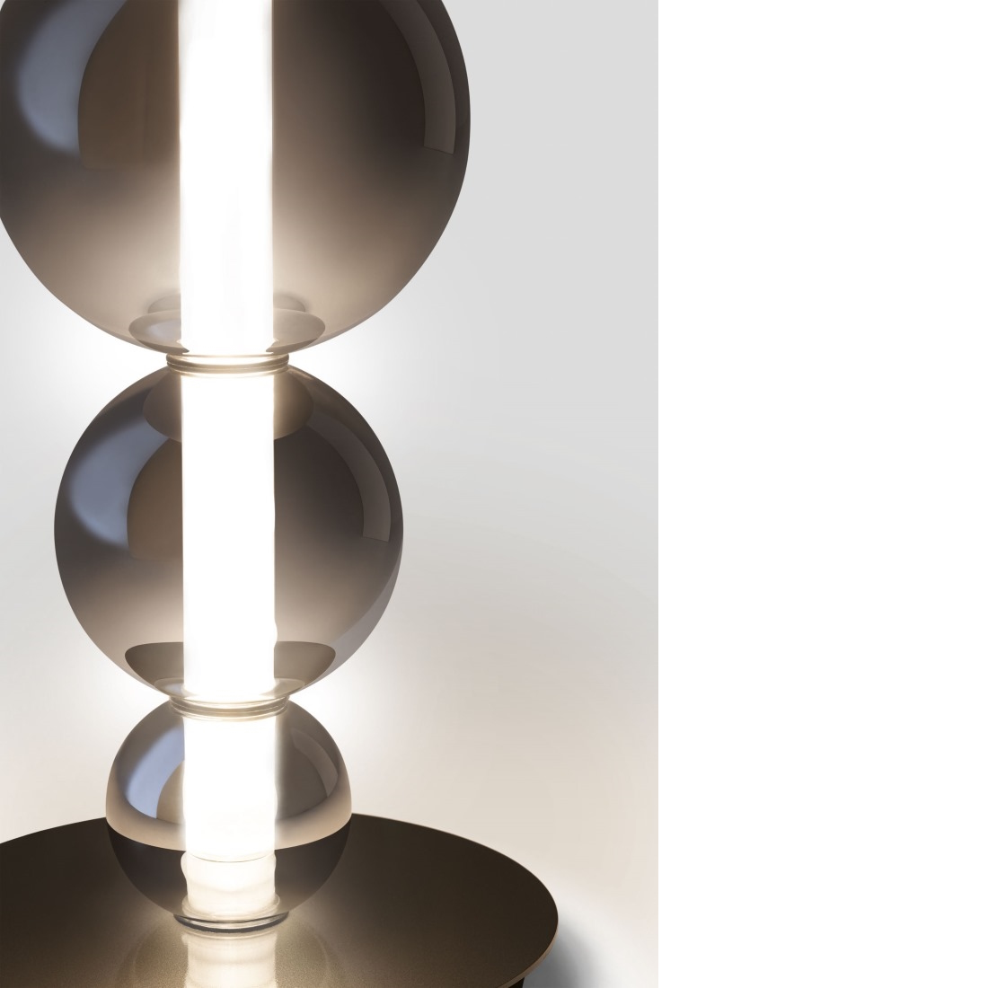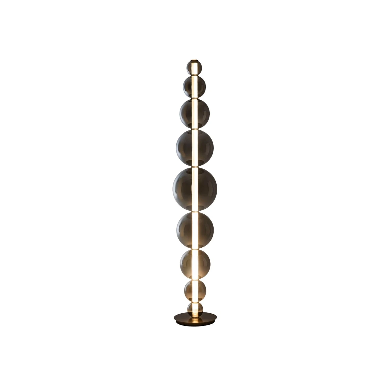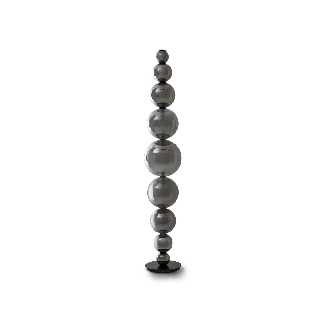 The structure is composed of nine borosilicate glass spheres in varying diameters, with a mirror titanium-hue PVD finish.