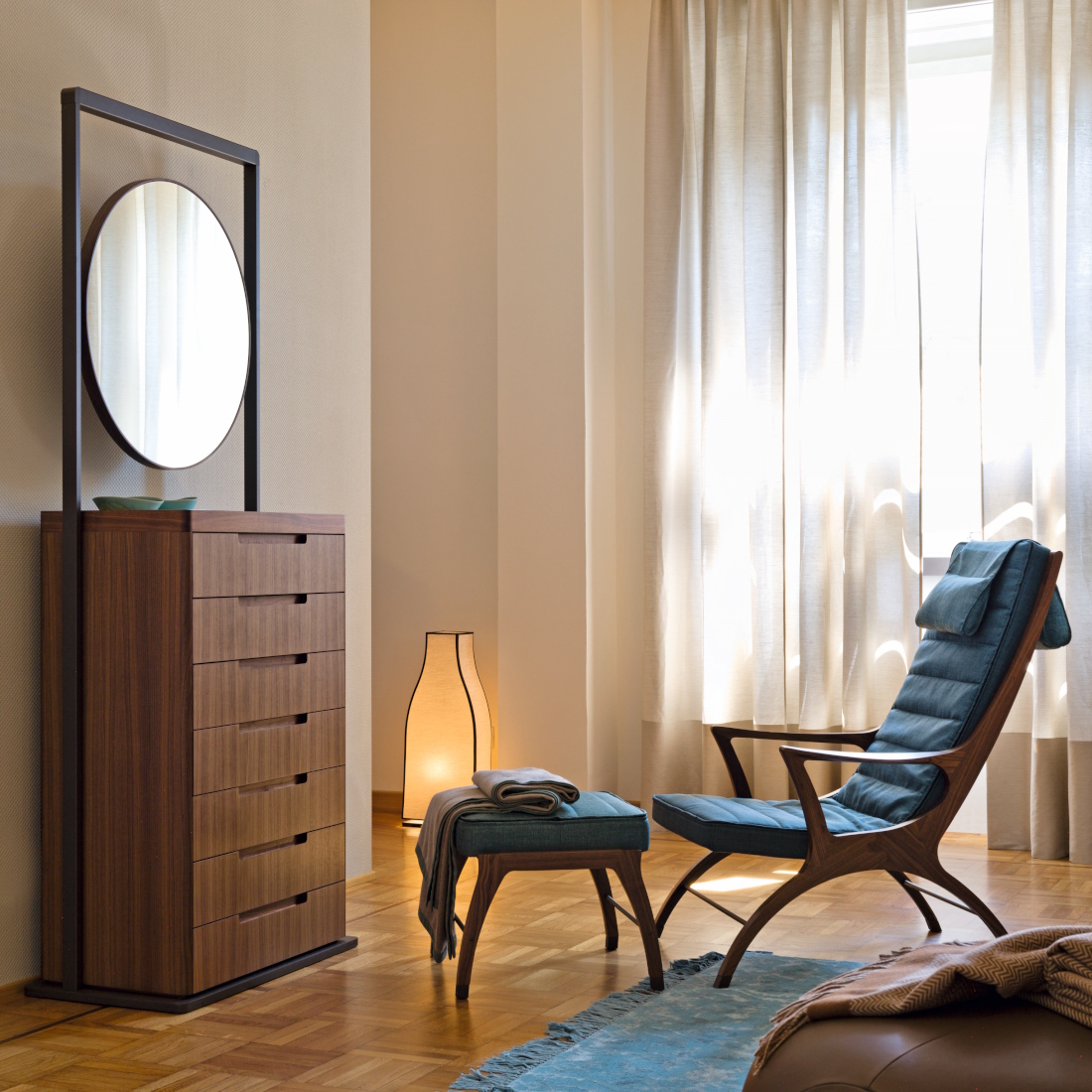 Founded in 1898 and based in Brianza, Giorgetti is an Italian maker rooted in cabinetmaking tradition. Every piece is made in its heritage atelier, where sculptural design meets material rigour—combining solid walnut, saddle leather, and marble with techniques refined over generations. The result is furniture conceived not just as form, but as spatial craftsmanship.