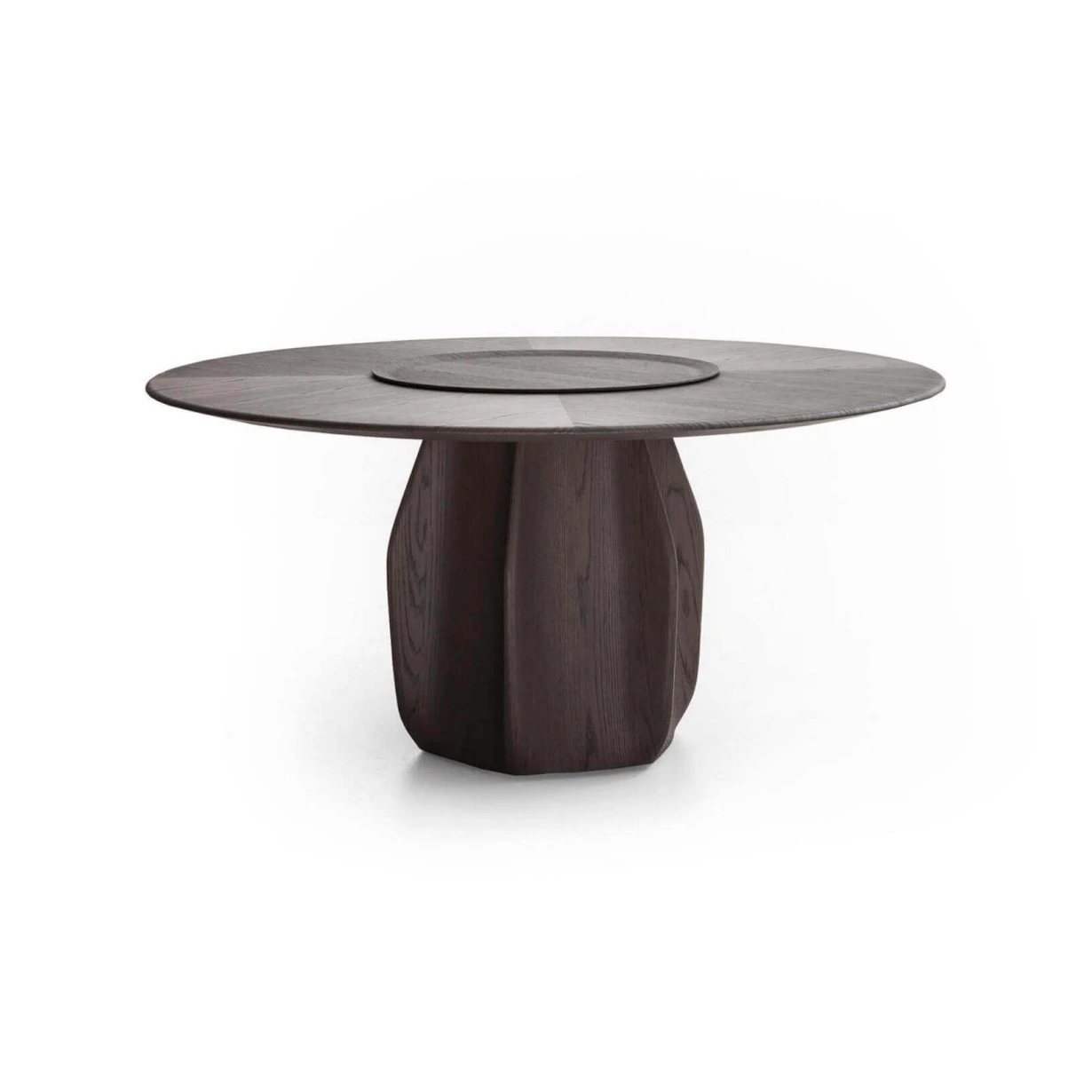 Finished in oak or eucalyptus veneer, the segmented surface mirrors the base’s form and can be paired with a matching rotating centre insert. A designer round dining table for contemporary residences or gallery-like dining rooms, Asterias reflects the evolution of artisanal technique through digital innovation and Italian material craft.