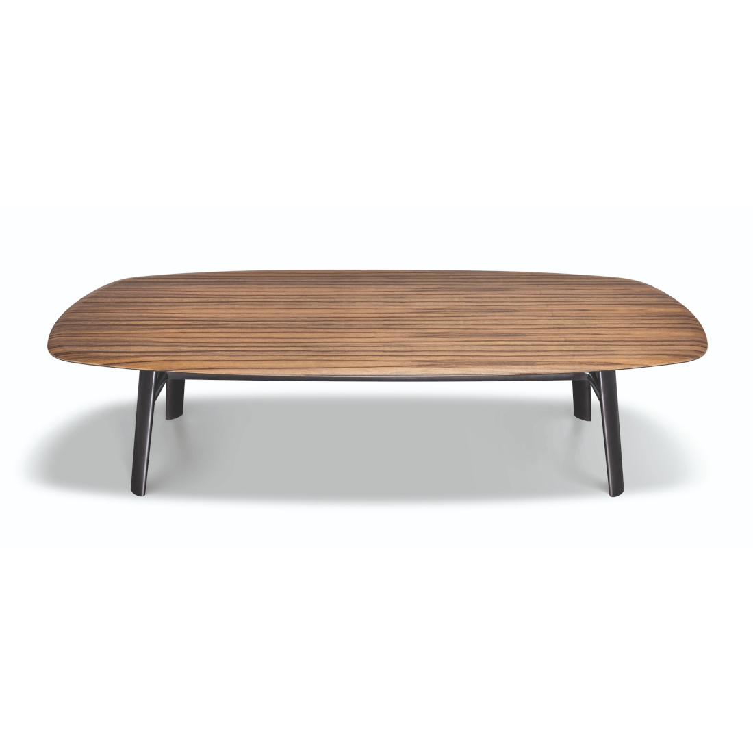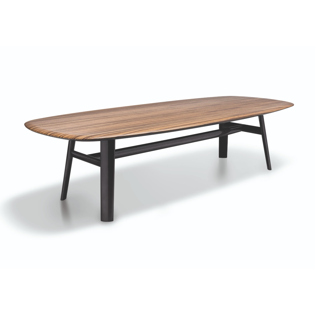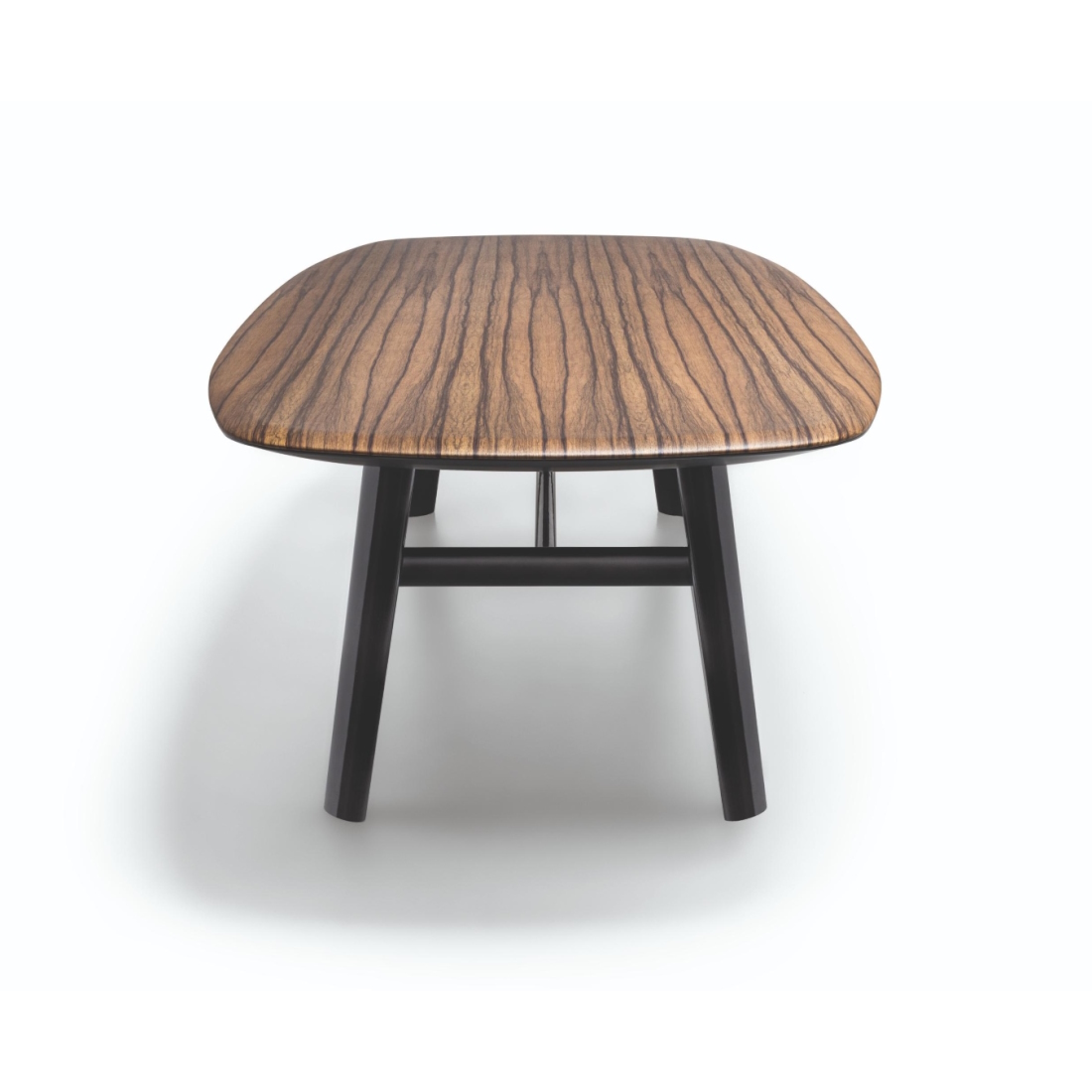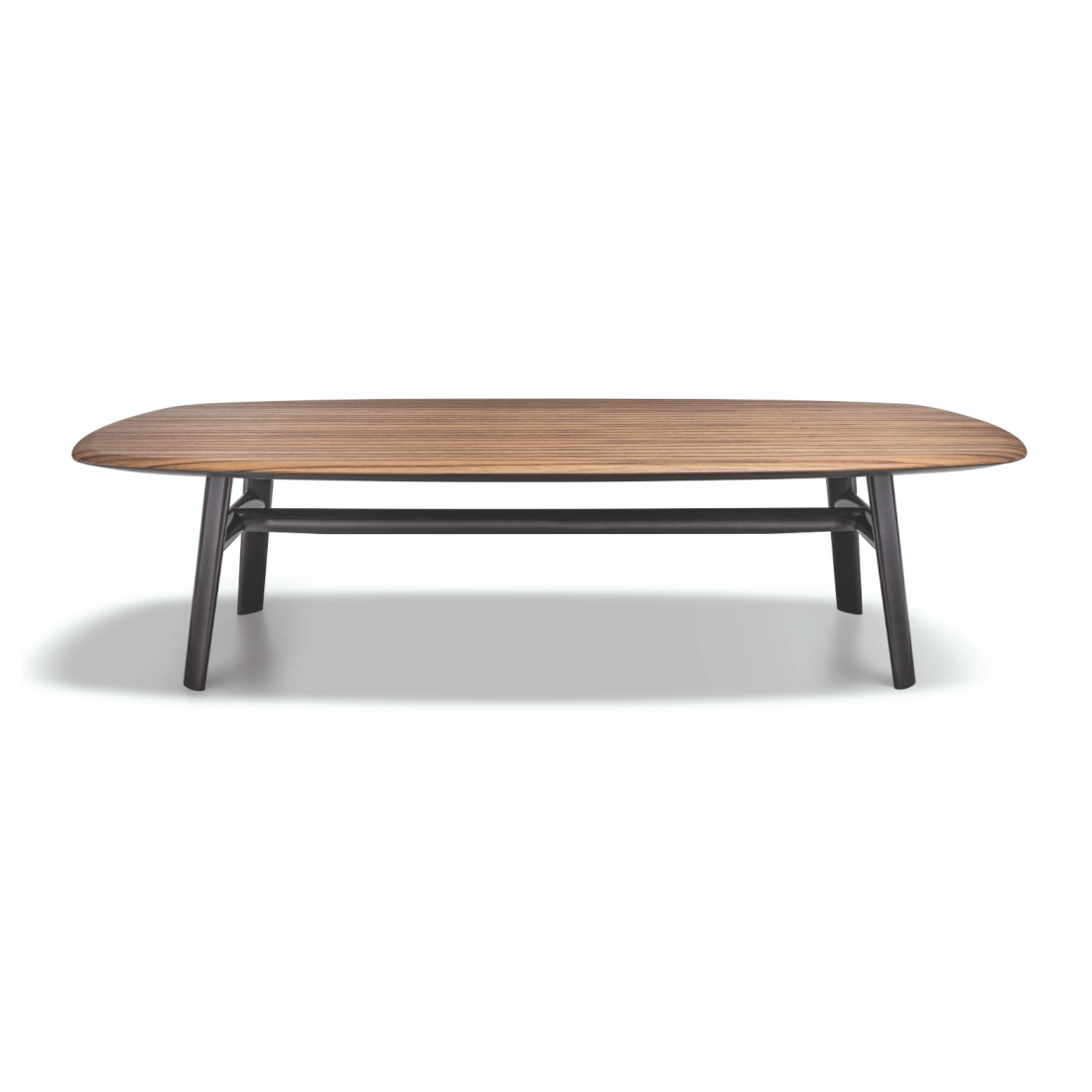Defined by its lozenge-shaped top and recessed structural beam, the Old Ford dining table by Molteni&C articulates Rodolfo Dordoni’s sculptural vision with engineered precision. Gently tapered in profile, the surface is crafted in limba or coffee oak, floating above four hydroformed lacquered legs joined by an architectural H-frame and an anthracite under-top.