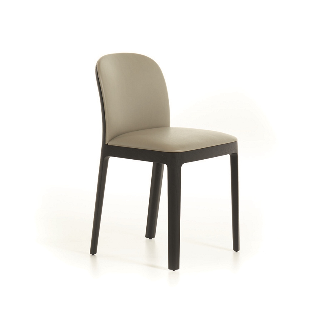 An upholstered seat and curved backrest add ergonomic comfort, tailored in a selection of Molteni&C fabrics or leathers. Crafted with artisanal joinery and calibrated for lightness, this sculptural timber chair is ideal for minimalist dining rooms, curated hospitality settings, or spatial compositions that favour compositional calm over embellishment—where form, integrity, and material honesty converge.