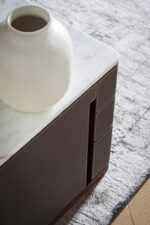 Inside, maple-lined drawers open to reveal Poltrona Frau’s signature precision, while an optional Calacatta gold marble top lends sculptural presence. With the option of a matching leather or walnut veneer back, Fidelio balances functionality and craftsmanship—transforming a quiet utility piece into a statement of understated Italian luxury.