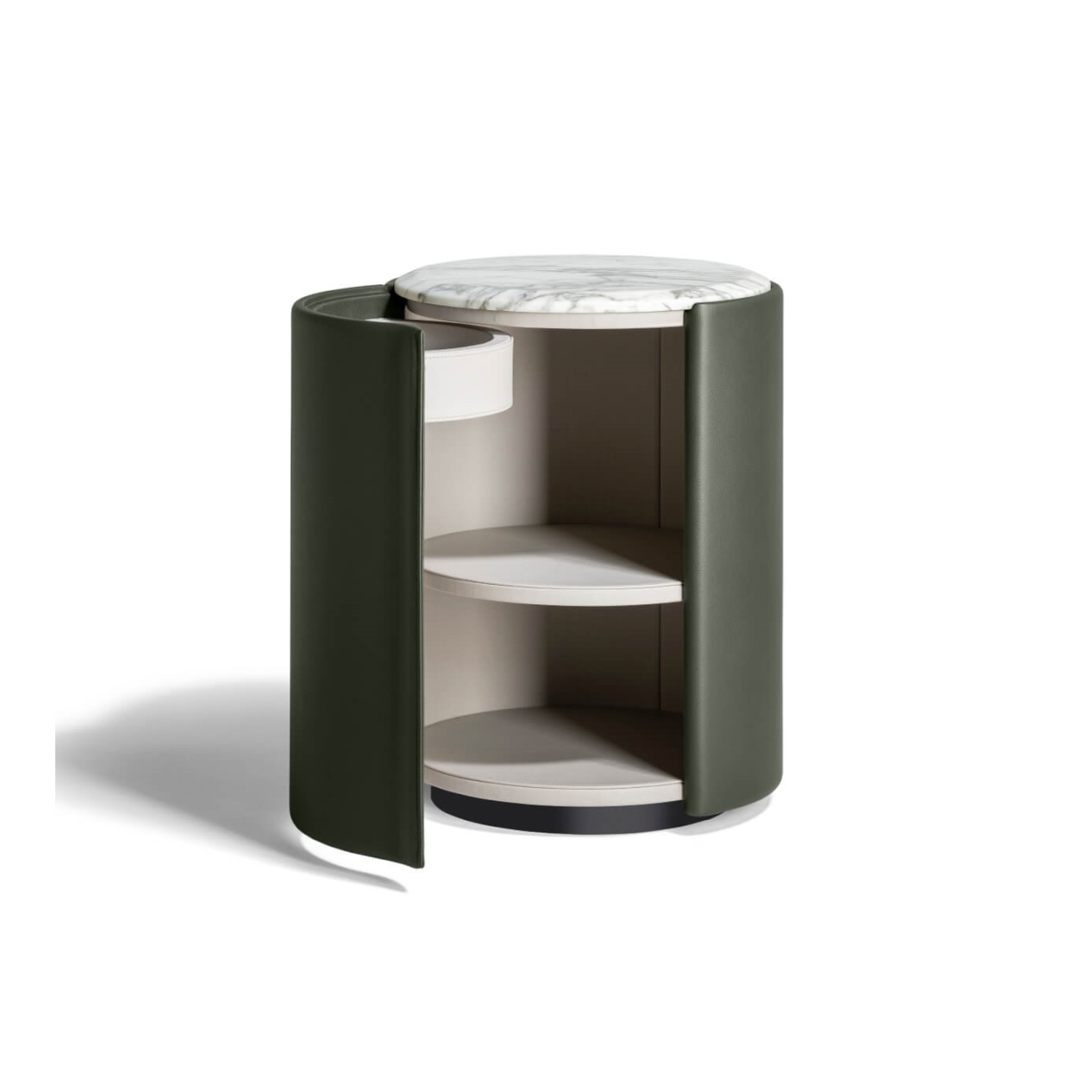 Each marble top is treated for subtle sheen and durability, enhancing the cabinet’s refined appeal.