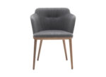 This chair features a frame in canaletta walnut or ash wood, available in a range of stained or lacquered finishes. The upholstery comes in a choice of fabric or leather, with matching or contrasting buttons available upon request.