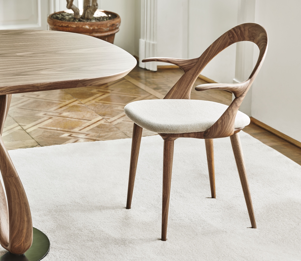 Rooted in the woodmaking heritage of Brianza, Porada is an Italian atelier guided by generations of family craftsmanship. In its Cabiate workshop, solid canaletta walnut is shaped into sculptural, contemporary forms—each piece balancing material richness with architectural clarity and a quiet sense of elegance.