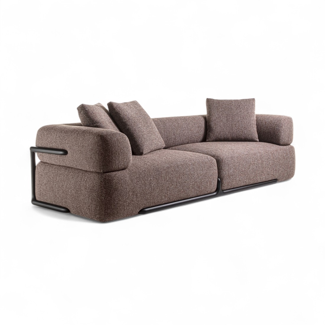 Multi-density polyurethane foam provides structure beneath tailored fabric or leather upholstery, with optional back cushions filled in sterilised feathers for a softer expression. Available in two widths and finished with refined stitching, Klem balances compact scale with comfort and proportion—delivering a materially rich seating solution with architectural clarity.