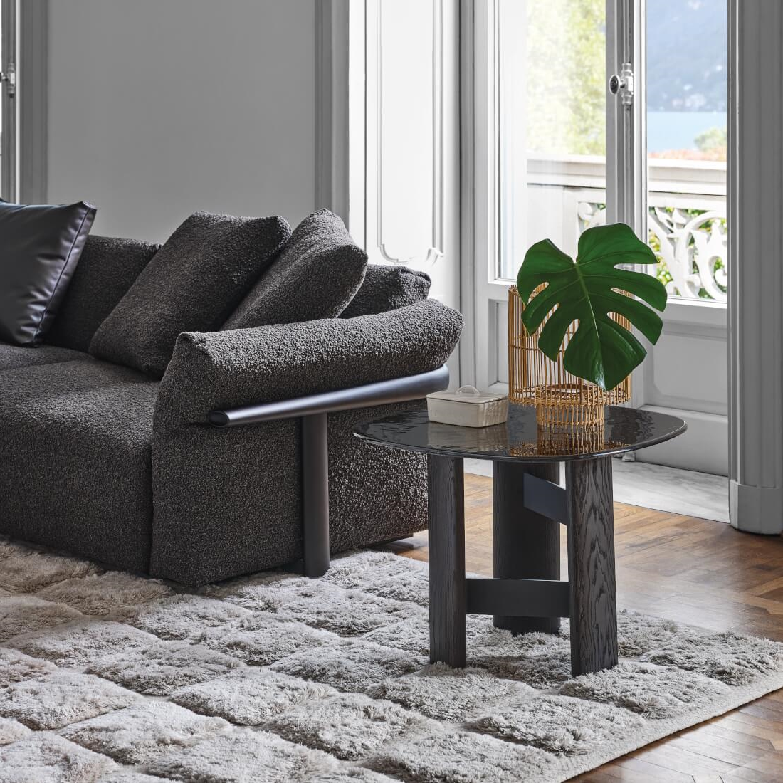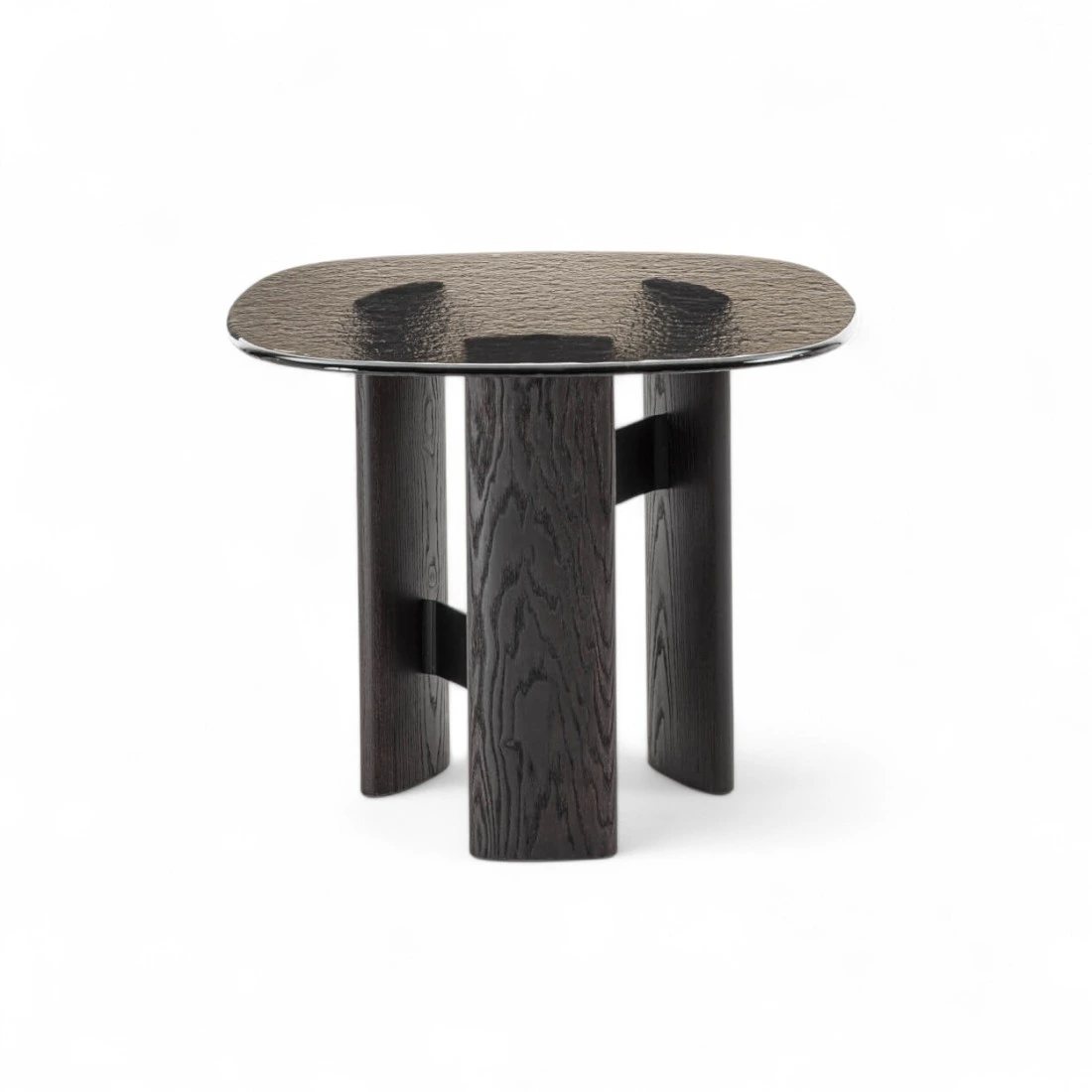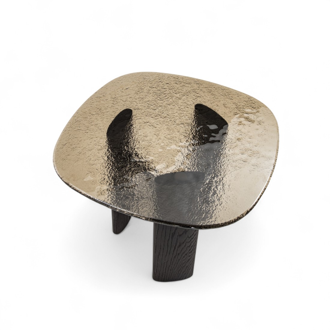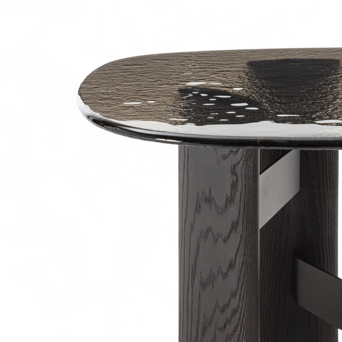 Topped with thermoformed glass in Porada’s Terre finish, the surface captures movement and texture with a quiet luminosity. Made in Italy, this designer side table speaks fluently to gallery-inspired interiors, offering tactile nuance and structural elegance in equal measure.