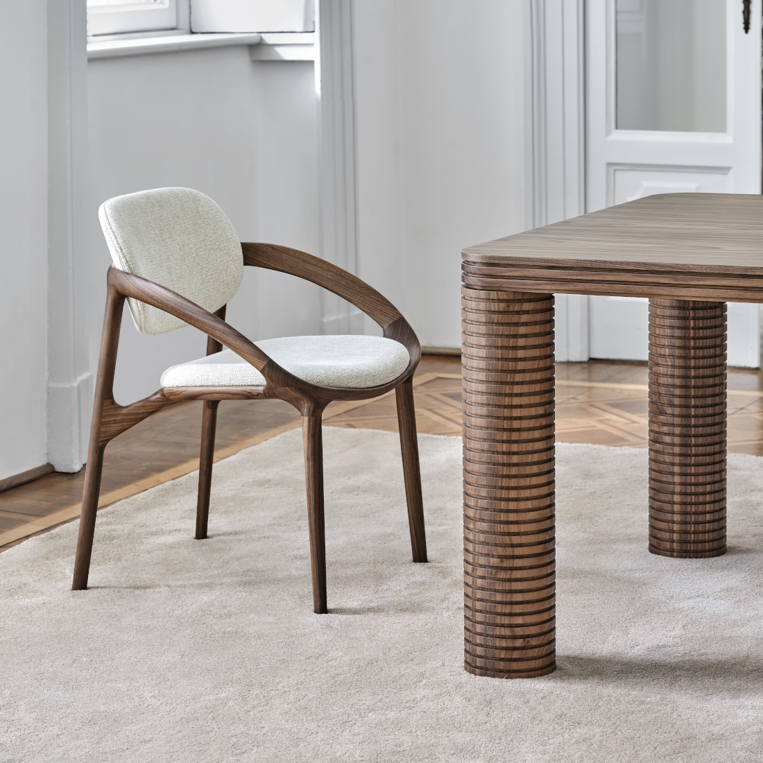Rooted in the woodmaking heritage of Brianza, Porada is an Italian atelier guided by generations of family craftsmanship. In its Cabiate workshop, solid canaletta walnut is shaped into sculptural, contemporary forms—each piece balancing material richness with architectural clarity and a quiet sense of elegance.