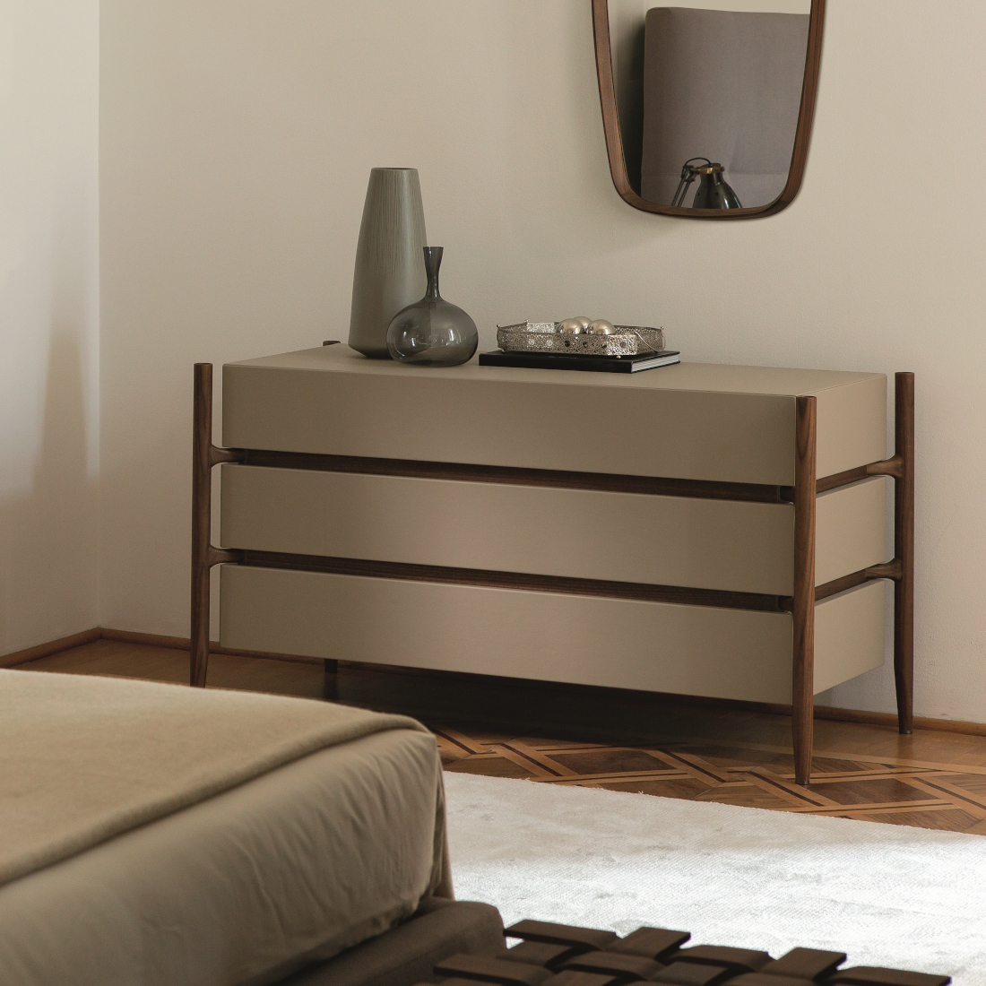 Rooted in the woodmaking heritage of Brianza, Porada is an Italian atelier guided by generations of family craftsmanship. In its Cabiate workshop, solid canaletta walnut is shaped into sculptural, contemporary forms—each piece balancing material richness with architectural clarity and a quiet sense of elegance.