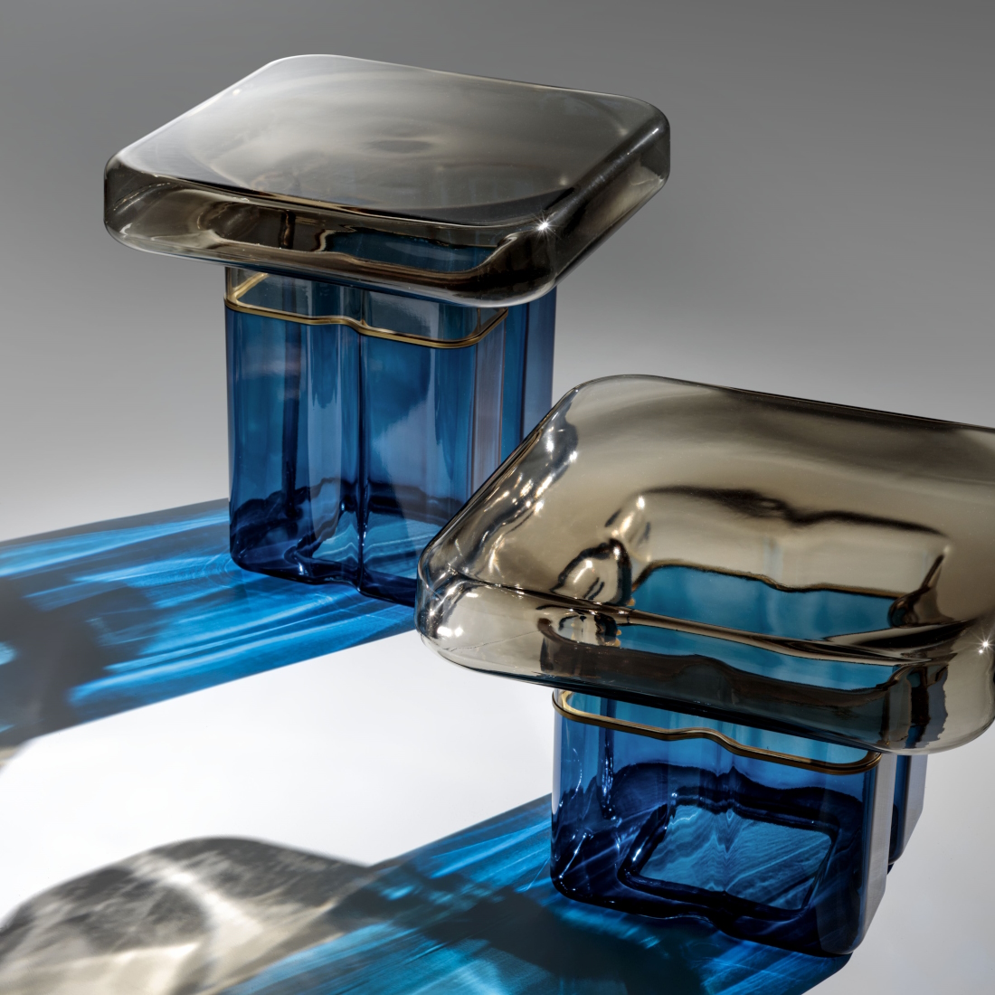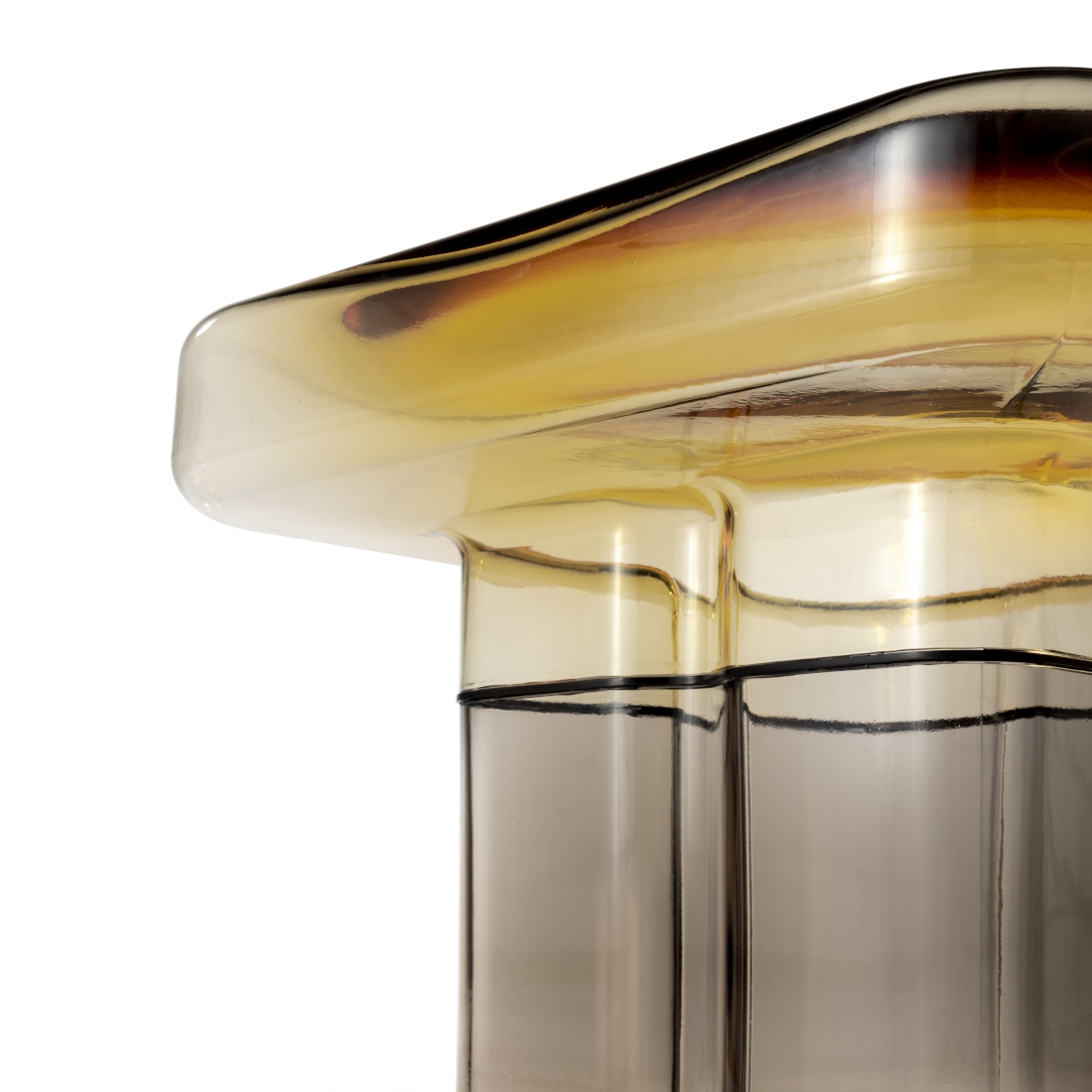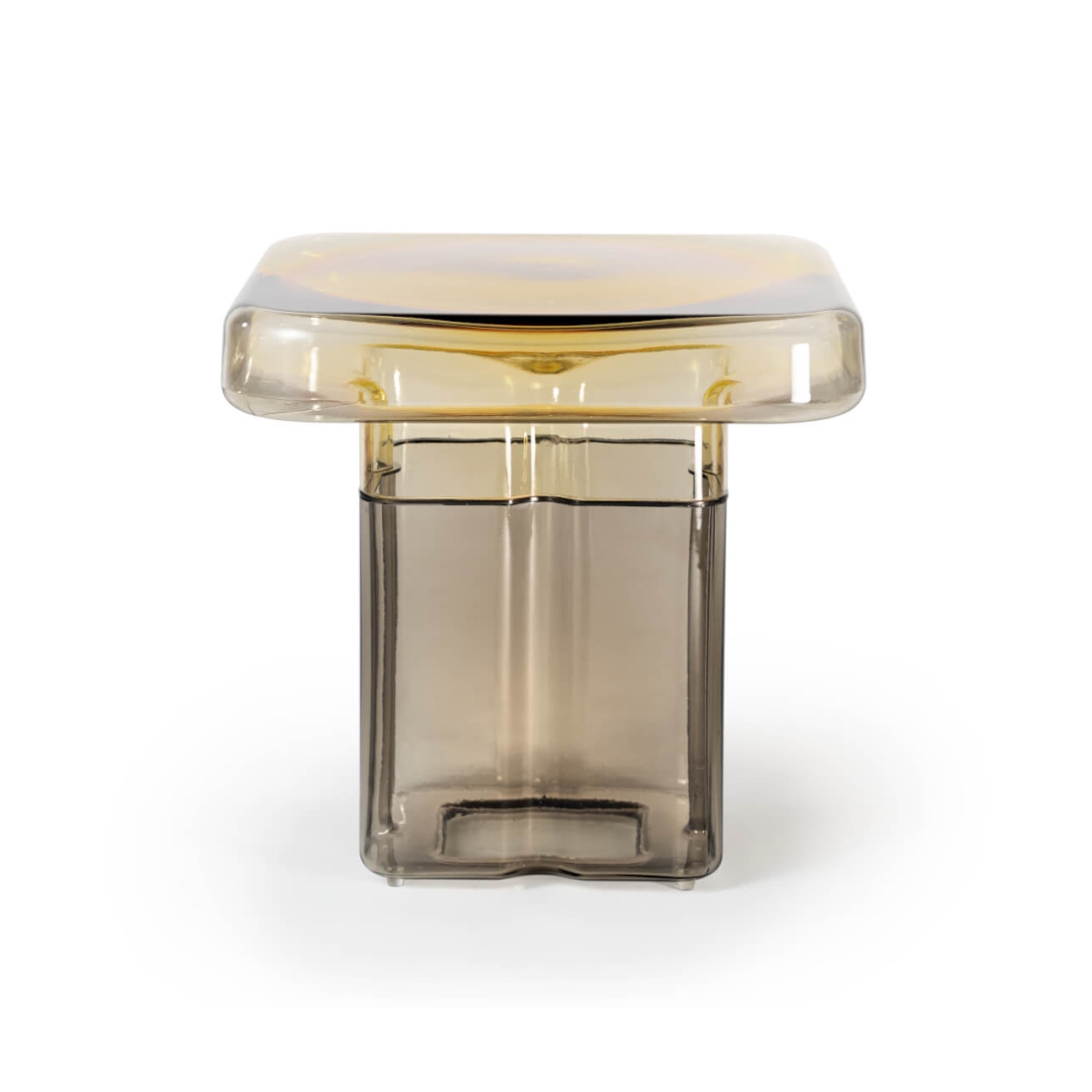 Each version is anchored by a hand-finished joint—gunmetal or gold—subtly articulating the transition between top and base. Handmade in Venice using traditional glassblowing techniques, this designer Italian side table reflects Reflex Angelo’s approach to sculptural furniture: chromatic intensity, material mastery, and the enduring cultural legacy of Murano glass.