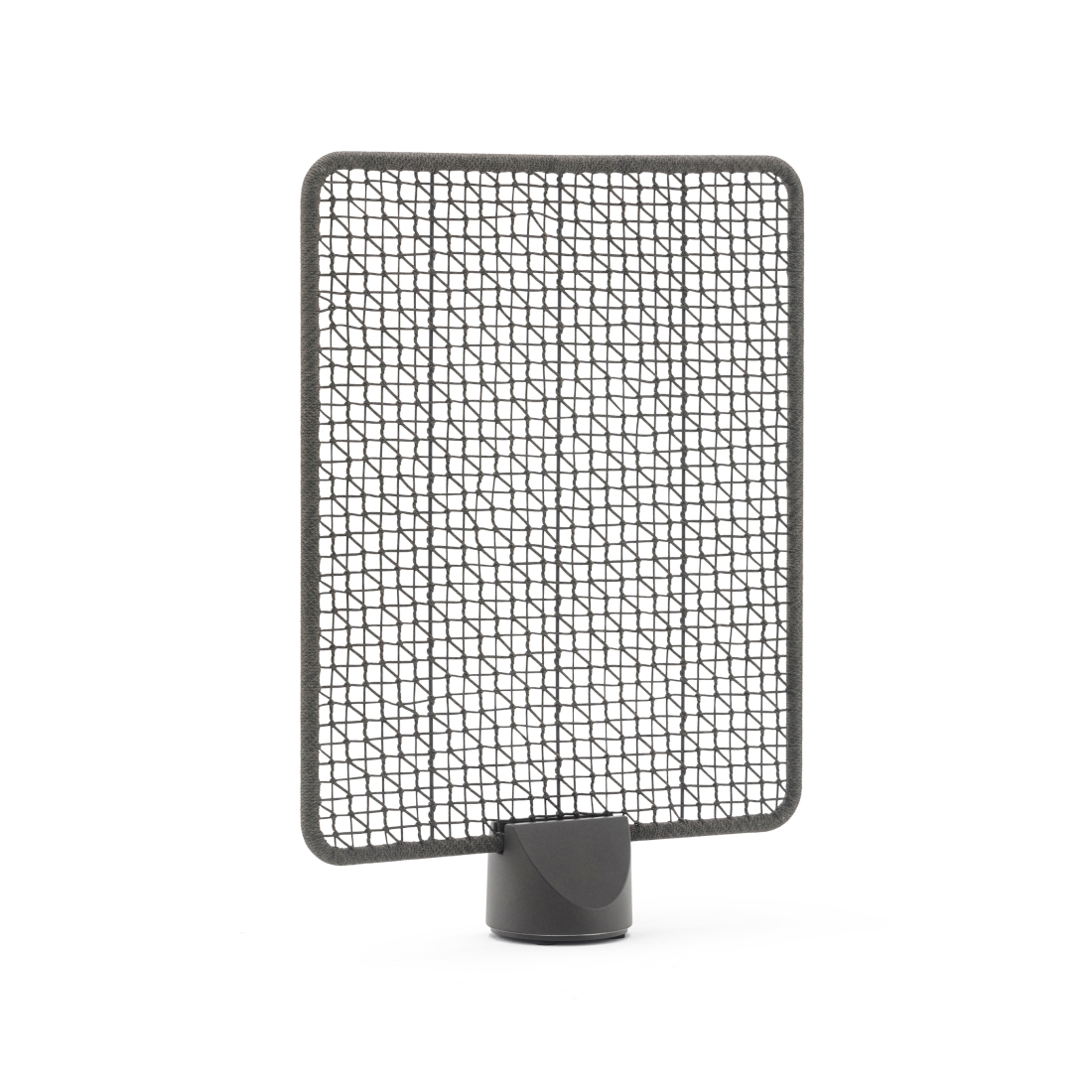Privacy panel in hand-woven synthetic fiber with powder-coated aluminum frame. Concrete base with ballast included.